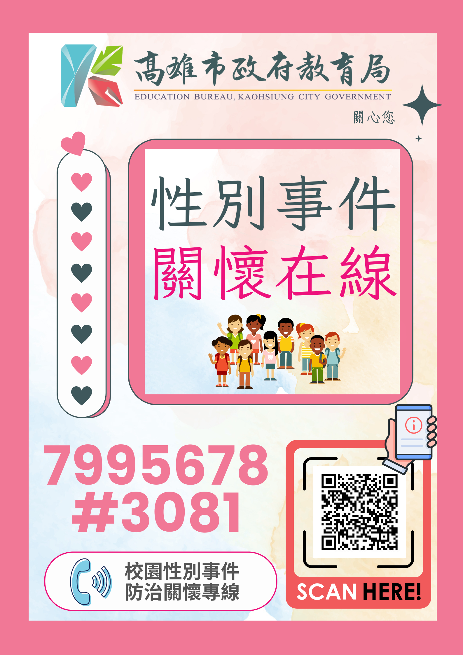 | 公告主旨 | 校園性別事件防治關懷專線(高雄市政府教育局) |