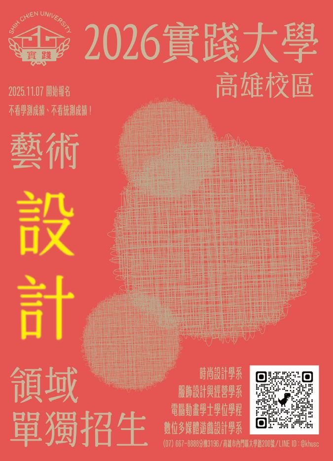 校園公告 公告主旨 實踐大學高雄校區115藝術設計領域單獨招生相關資訊 發佈日期 2025 年 10 月 29 日 發佈單位 註冊組 公告類別 升學資訊 公告等級 無 點閱次數 7 公告內容 相關資訊請至該校高雄校區招生資訊網參閱,網址:https://recruit.kh.usc.edu.tw/ 相關附件 【2025-10-29】逢甲大學國際科技與管理學院辦理「115學年度招生說明會」 【2025-10-29】國立中正大學115學年度學士班特殊選才(含新住民入學)招生相關資訊