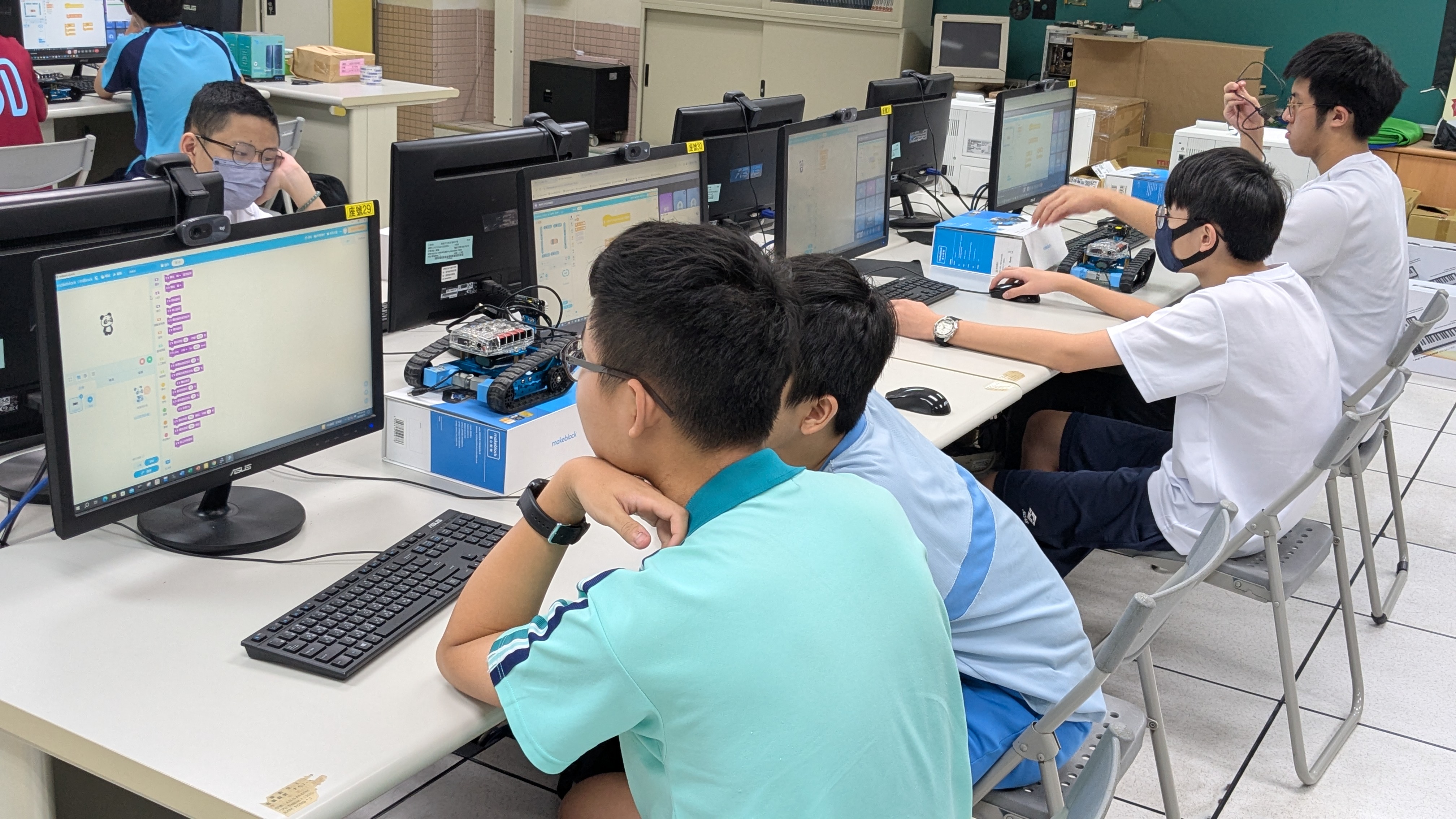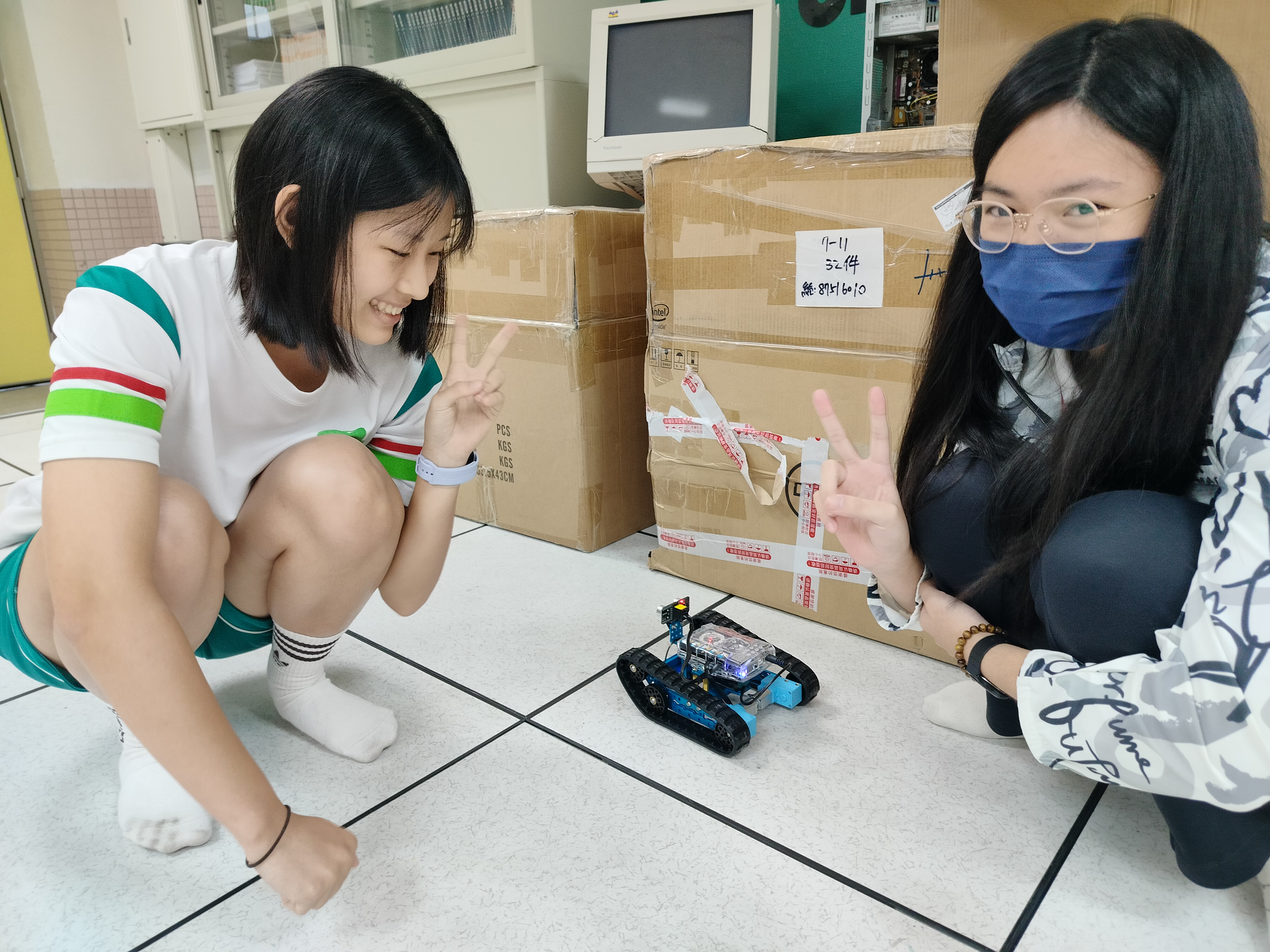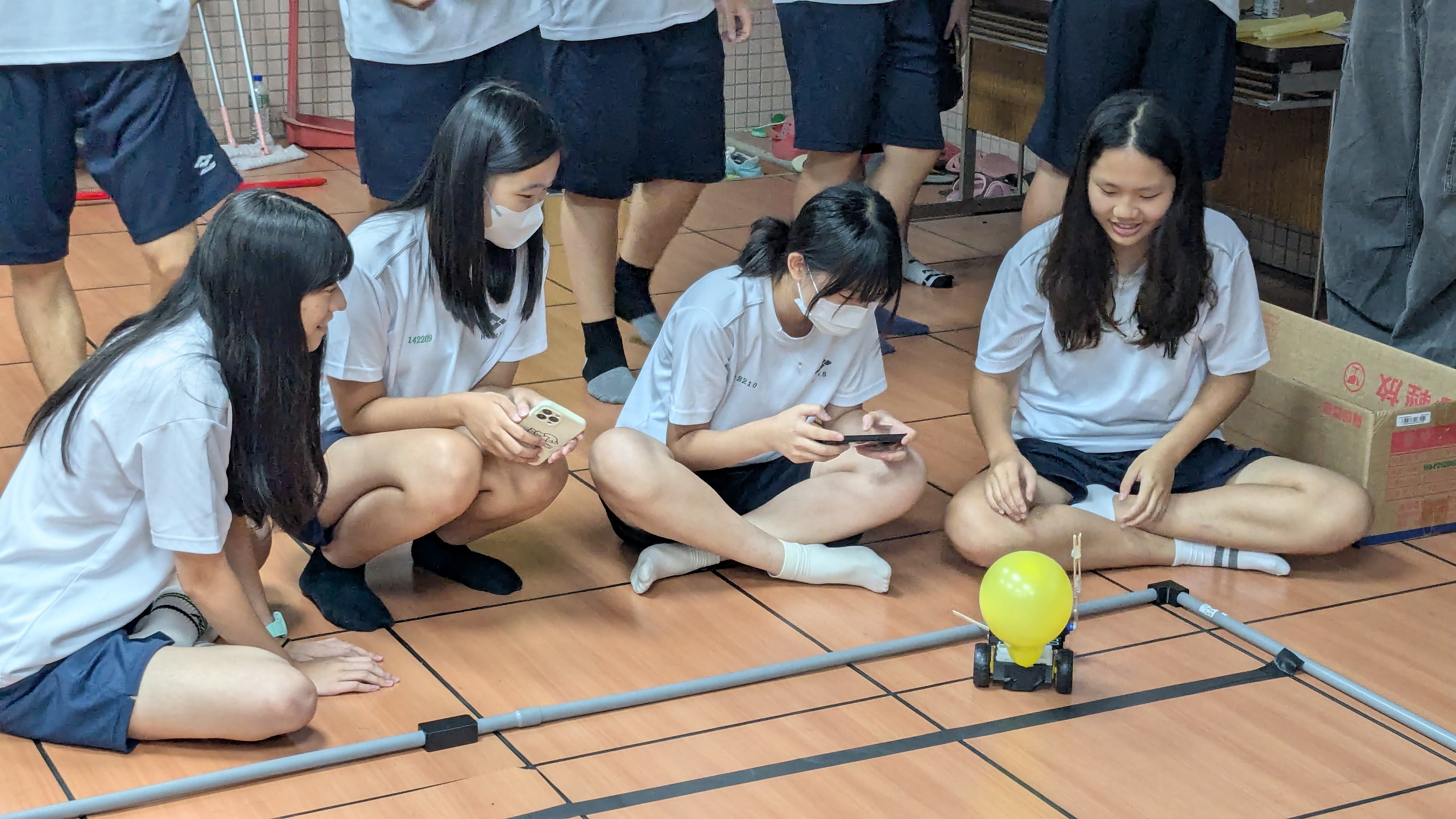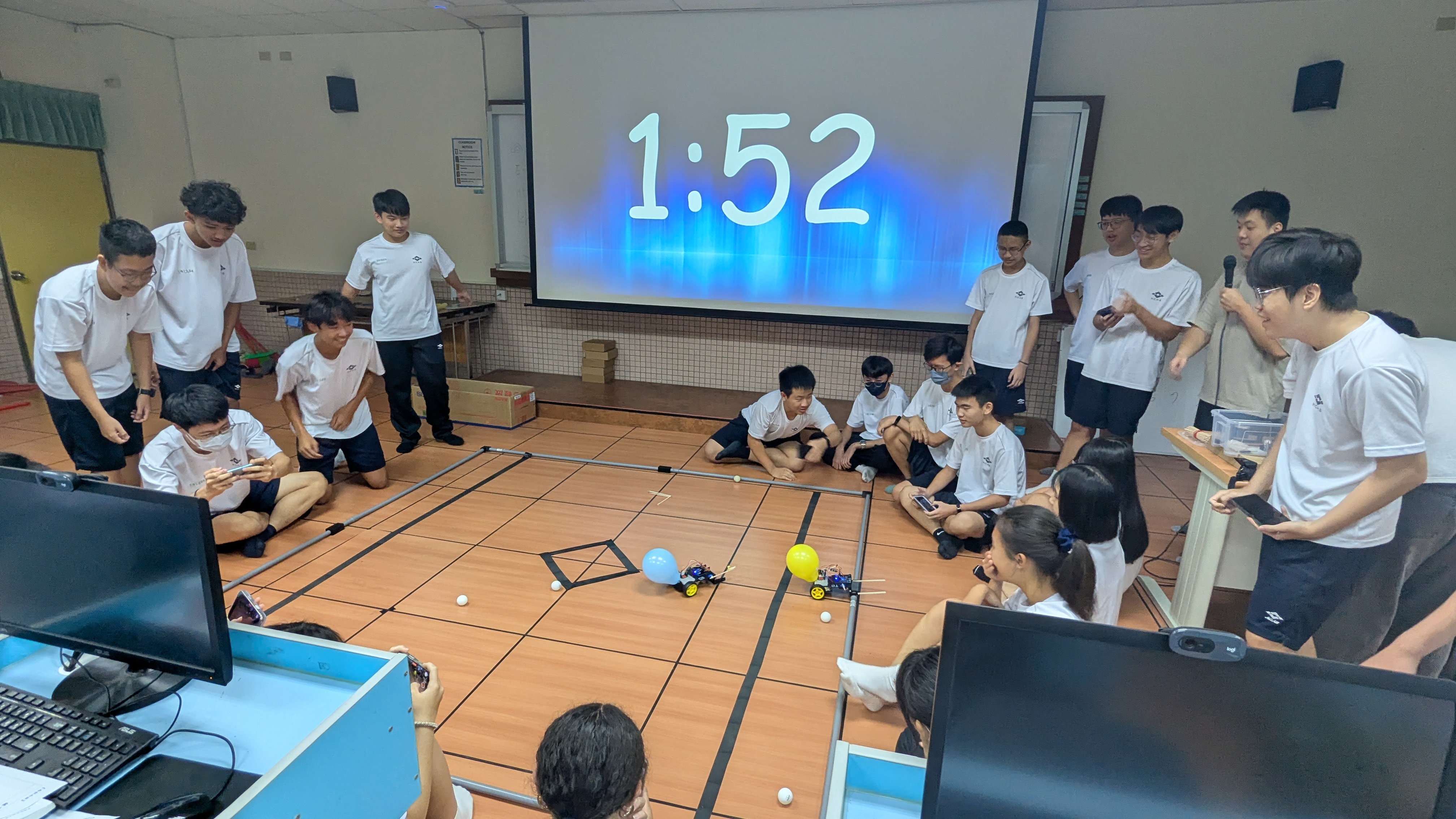 - 可以從無到有把機器人組裝起來,看見成果,非常有成就感,這次是第一次寫循跡程式,剛開始和同學怎麼寫都失敗,但經過老師指導後就發現非常簡單,寫程式的過程中鍛鍊思考能力,這次活動收穫滿滿,讓本來對機器人沒有興趣的我找到機器人的有趣之處,還能學習團隊合作、交到好朋友。