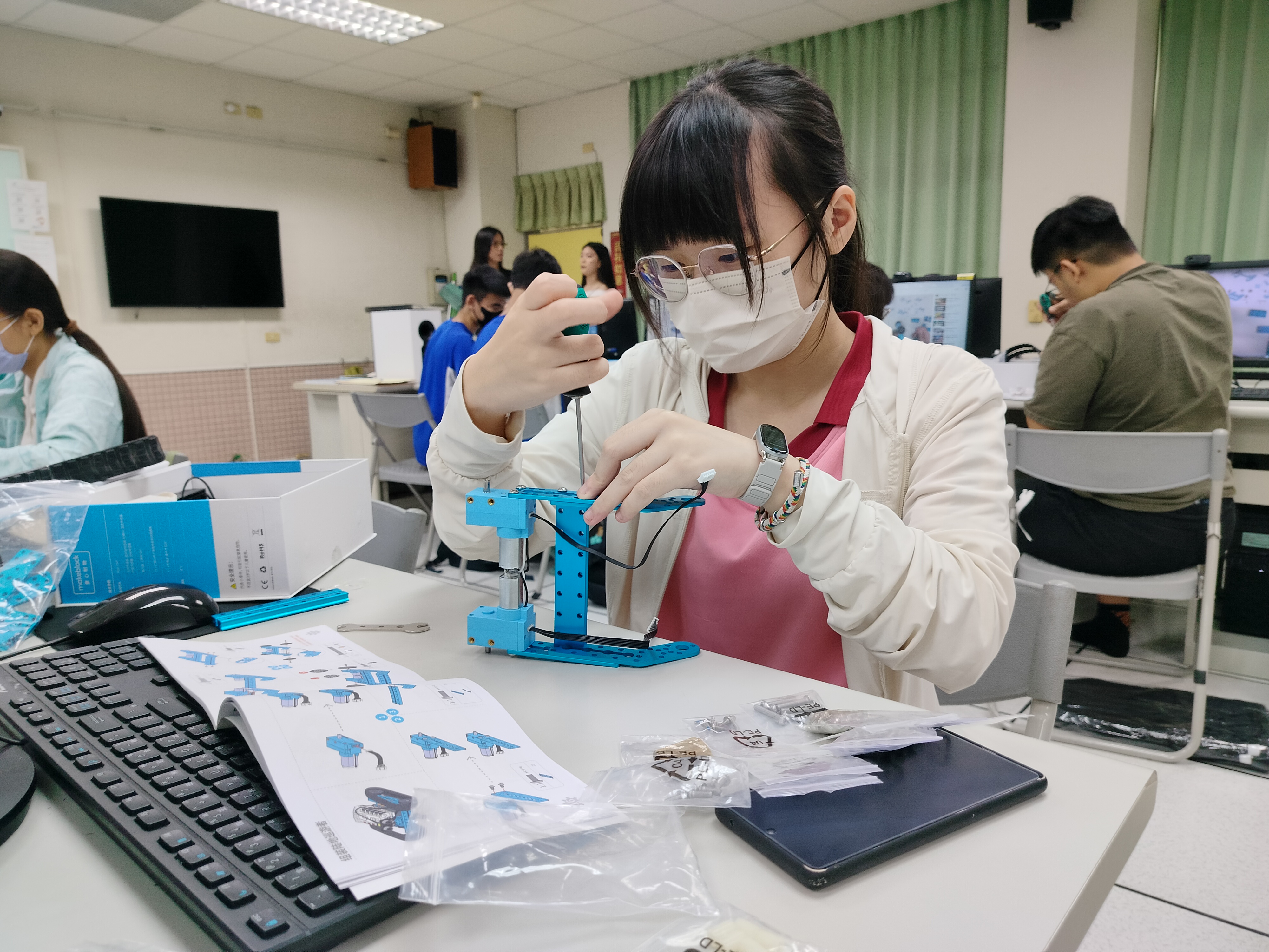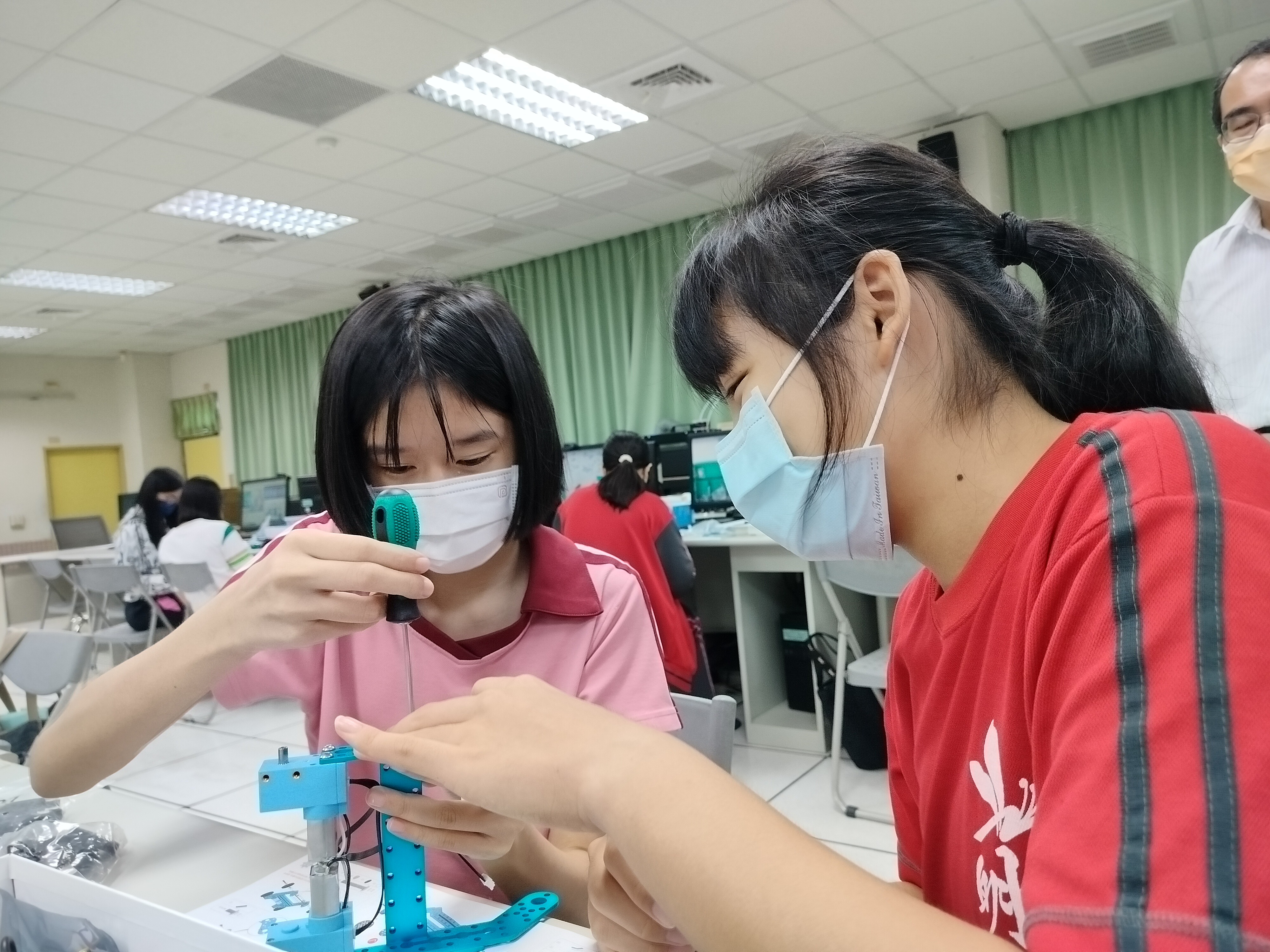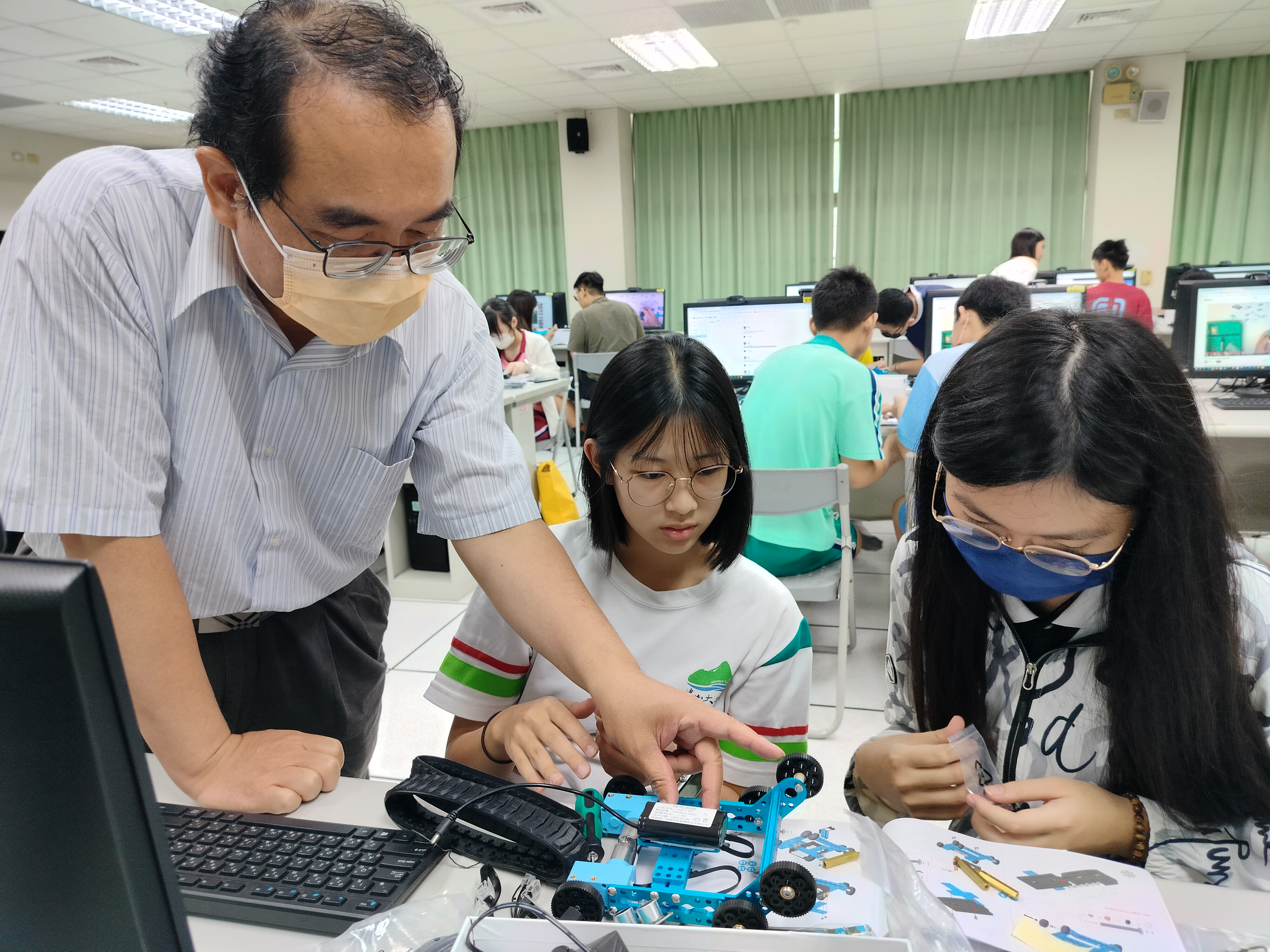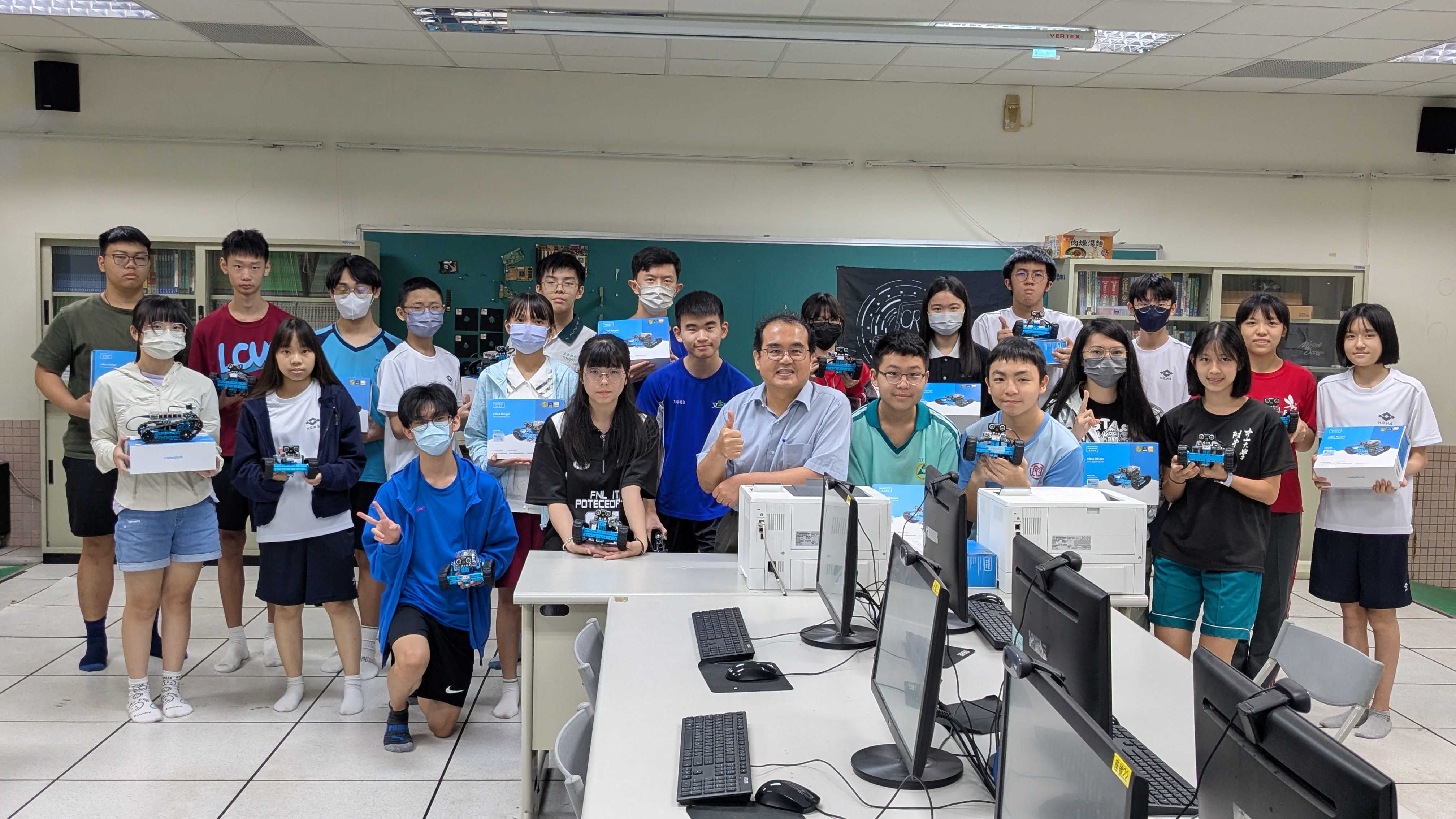 - 可以從無到有把機器人組裝起來,看見成果,非常有成就感,這次是第一次寫循跡程式,剛開始和同學怎麼寫都失敗,但經過老師指導後就發現非常簡單,寫程式的過程中鍛鍊思考能力,這次活動收穫滿滿,讓本來對機器人沒有興趣的我找到機器人的有趣之處,還能學習團隊合作、交到好朋友。